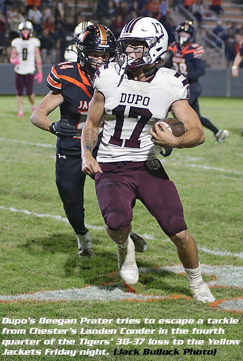 CHESTER - In a contest that had a little bit of everything, it was fitting that the player who had the best night overall would come up with the biggest defensive play in the game during the Dupo vs. Chester Cahokia Conference Illinois Division battle on Friday night.