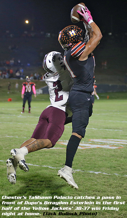 He finished the next Chester drive with a 34-yard field goal as the Yellow Jackets' lead looked safe at 31-13 with 2:47 left in the third quarter.