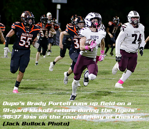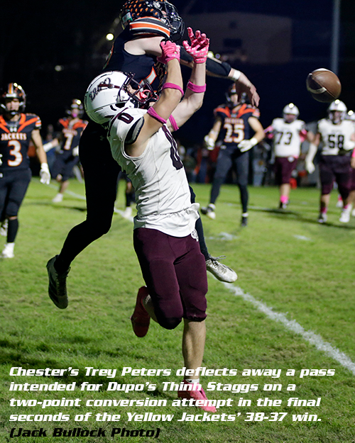 CHESTER - In a contest that had a little bit of everything, it was fitting that the player who had the best night overall would come up with the biggest defensive play in the game during the Dupo vs. Chester Cahokia Conference Illinois Division battle on Friday night.