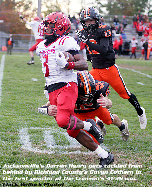 The victory puts Jacksonville, and head coach Mark Grounds, on the road at Cahokia next week while Richland County saw their dream season end with a nightmare home loss to end up 9-1.